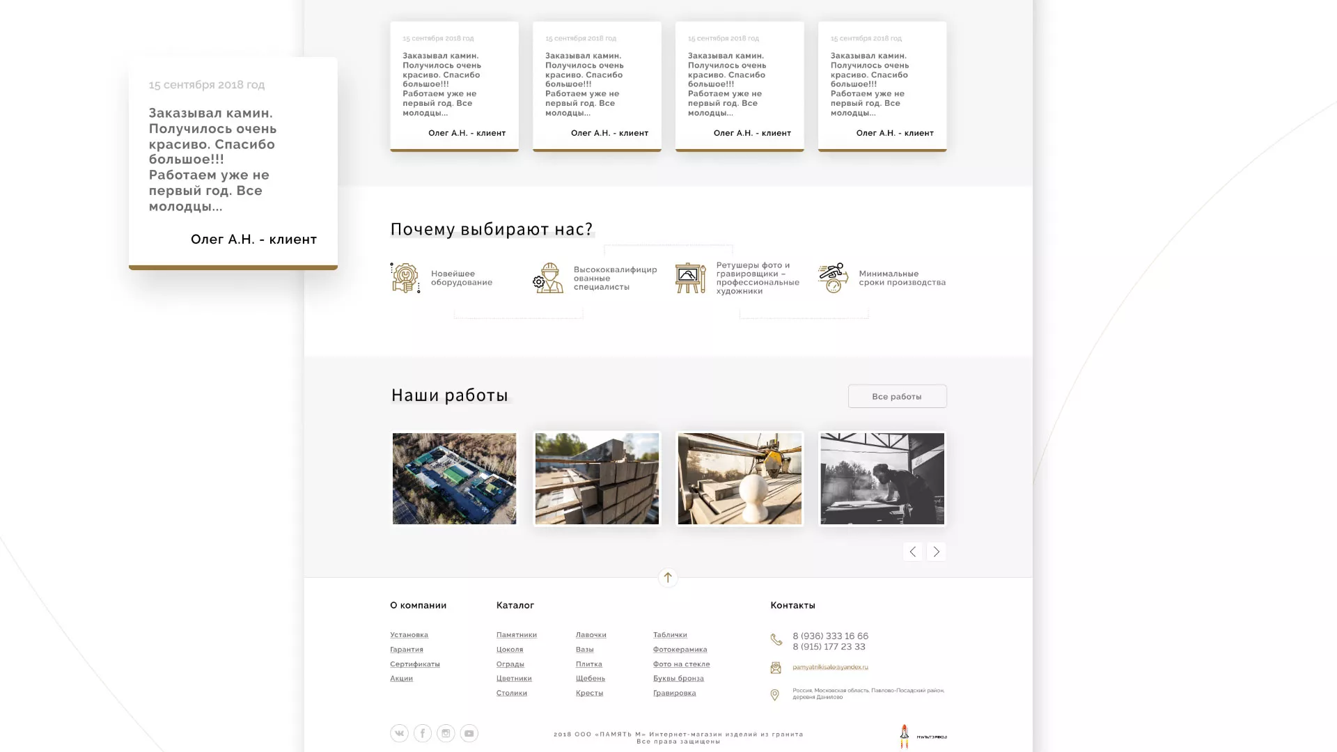 Разработка логотипа, фирменного стиля и сайта в Каменск-Шахтинске для компании «Память-М». Компания является предприятием по изготовлению всех видов надгробных сооружений: памятников, цоколей на могилу, оградок, столов, лавочек, ваз, балясин, плитки, мемориальных комплексов. Компании «Память-М» изготавливает все виды мемориальных изделий на собственном производстве в Каменск-Шахтинске.